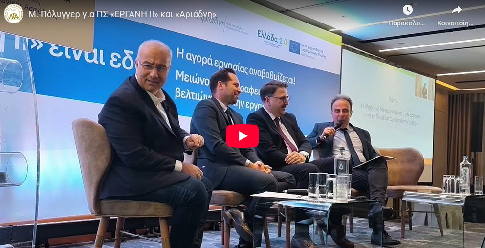 Ο Πρόεδρος, Μιχάλης Πόλυγγερ, εκπροσωπώντας και το Οικονομικό Επιμελητήριο Ελλάδος στην Ημερίδα παρουσίασης των ΠΣ «ΕΡΓΑΝΗ ΙΙ» και «Αριάδνη» που πραγματοποιήθηκε στις 17/12/2025 από το ΥΕΚΑ