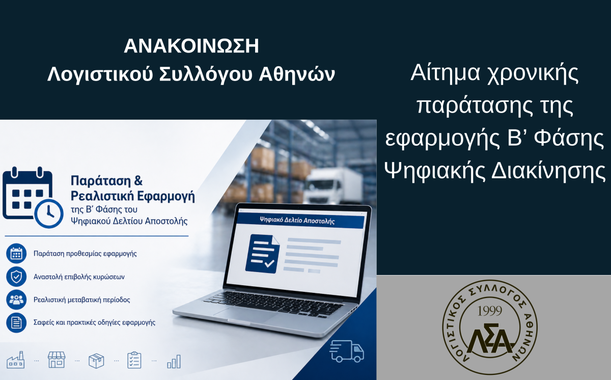 Σε συνέχεια της υποχρεωτικής εφαρμογής της Β’ Φάσης του Ψηφιακού Δελτίου Αποστολής, όπως προβλέπεται ειδικά από την απόφαση Α.1123/2024 και τις συναφείς κανονιστικές πράξεις, διαπιστώνουμε σε ευρεία κλίμακα αντικειμενική αδυναμία συμμόρφωσης των εμπλεκόμενων εντός του υφιστάμενου χρονικού ορίου.