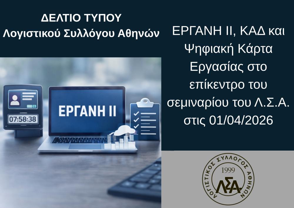 ΕΡΓΑΝΗ ΙΙ, ΚΑΔ και Ψηφιακή Κάρτα Εργασίας στο επίκεντρο του σεμιναρίου του Λ.Σ.Α.