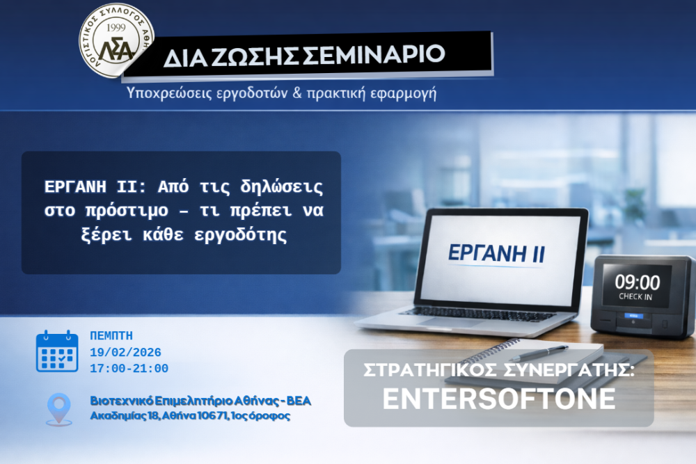 19.02.2026 Διά Ζώσης Σεμινάριο: ΕΡΓΑΝΗ ΙΙ: Από τις δηλώσεις στο πρόστιμο – τι πρέπει να ξέρει κάθε εργοδότης