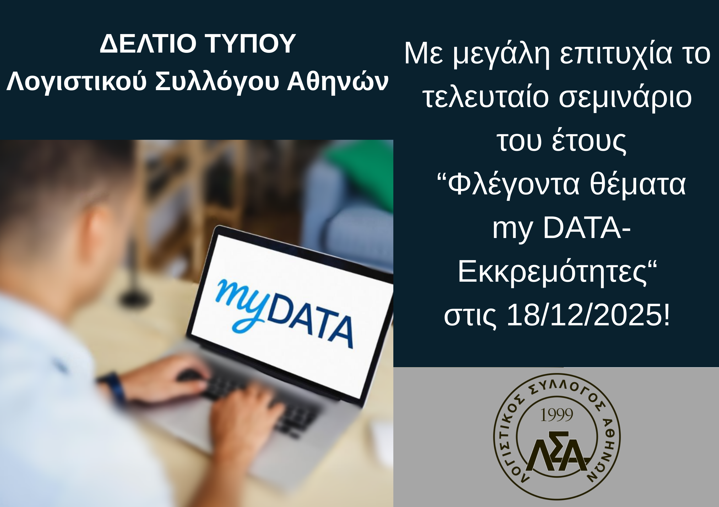 18.12.2025: Πανελλαδικό WEBINAR : Φλέγοντα θέματα myDATA - Εκκρεμότητες